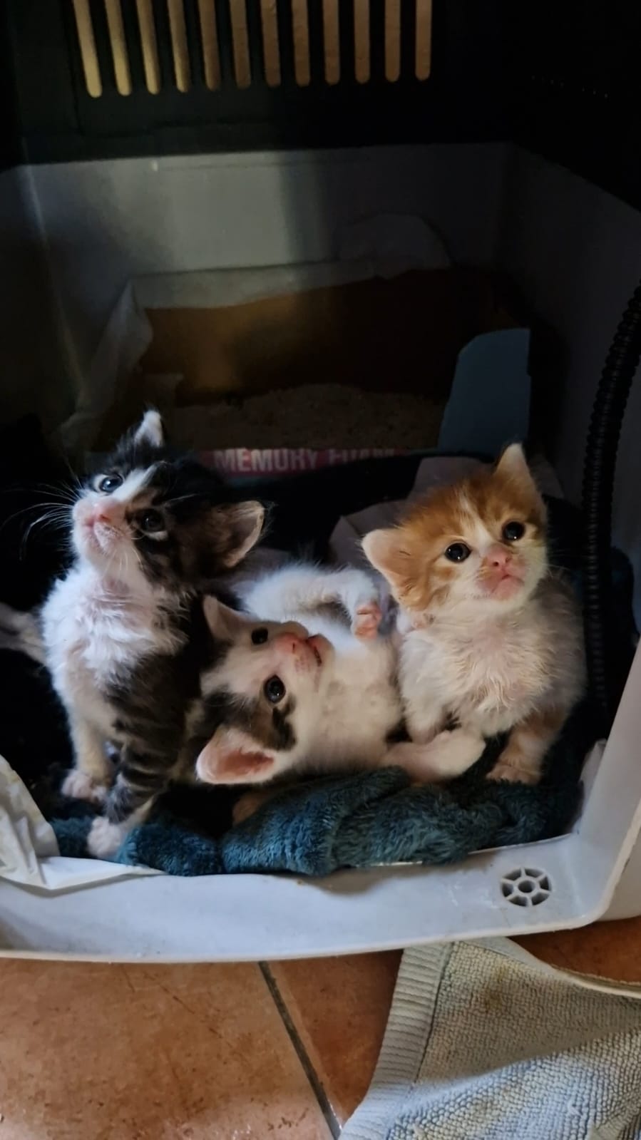 Nela wurde zusammen mit ihren Geschwistern Cosmo und Pluto in einer Fabrik geboren, zwischen Paletten und direkt neben einer großen Verbrennungsanlage. Ihre Mama verließ die Kleinen auf Futtersuche und kam nicht zurück. Glücklicherweise entdeckte ein aufmerksamer Mitarbeiter die winzigen Babys und rettete sie. In den ersten Wochen wurde Nela liebevoll mit der Flasche aufgezogen, bis sie stark genug war, selbstständig zu fressen und zu den anderen Katzen zu ziehen.