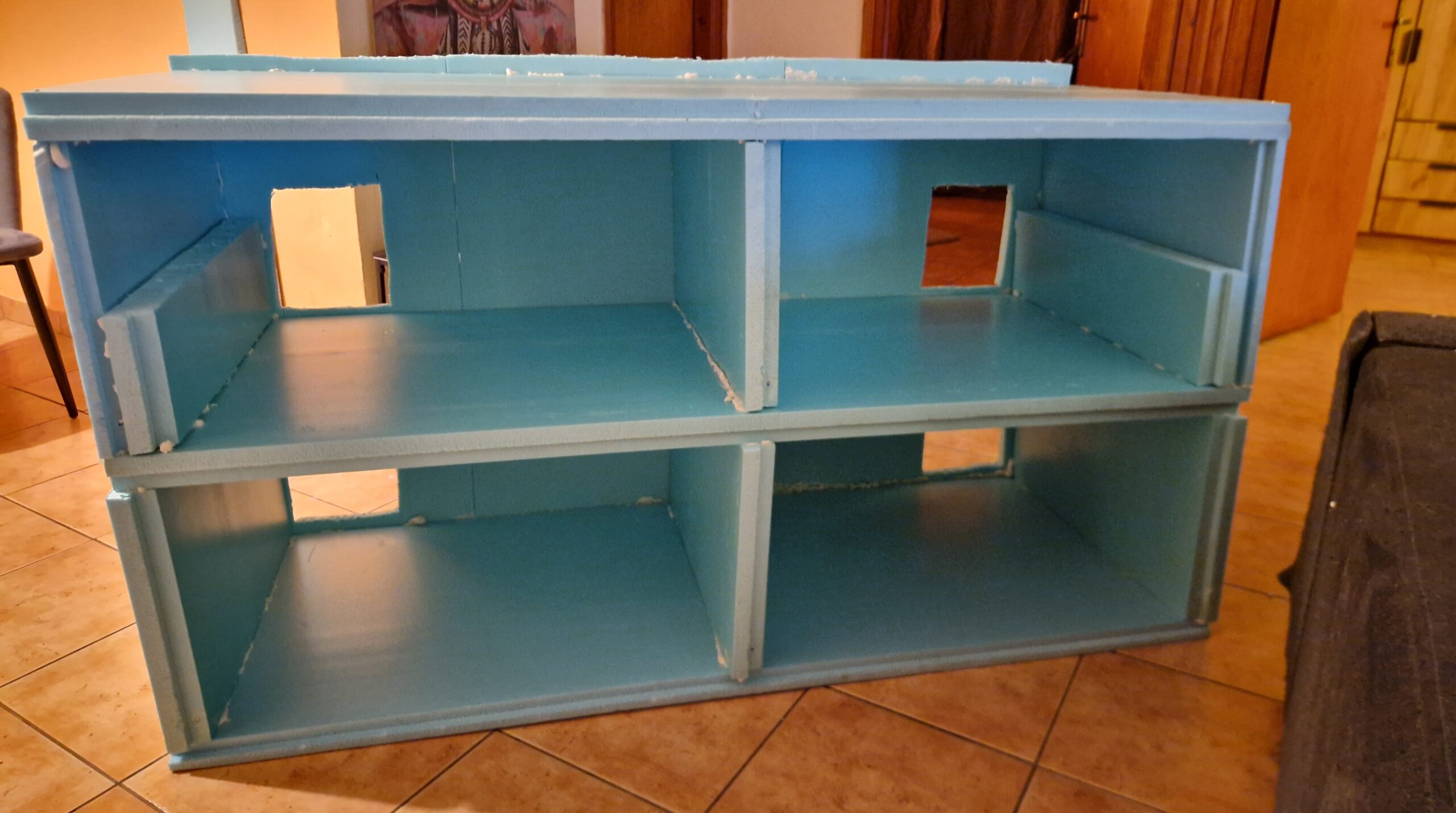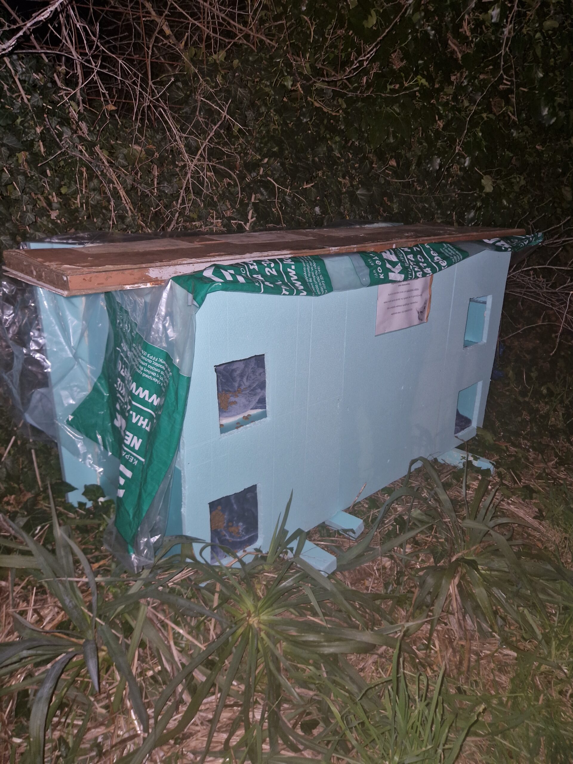 Die Styroporplatten sorgen dafür, dass die Wärme gespeichert wird und eisige Temperaturen draußen bleiben. Der Eingang ist bewusst klein gehalten, damit möglichst wenig Kälte eindringen kann. Idealerweise werden die Boxen mit Stroh befüllt, da es trocken bleibt und hervorragend isoliert. Vorübergehend gehen auch mal Decken. Diese sollten aber zeitnah mit Stroh ausgetauscht werden.